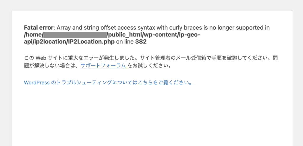 【PHP 8系アップデート×WordPress】「この Web サイトに重大なエラーが発生しました。」の対応をした話(IP Geo Block)