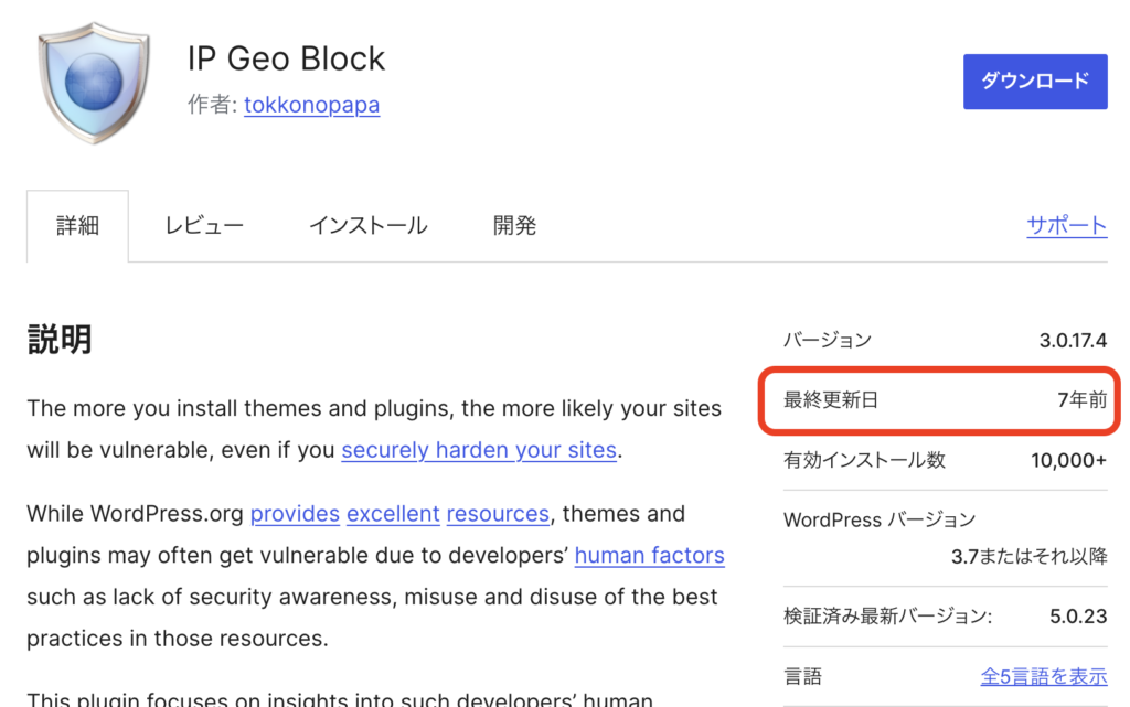 - インストール済みWordpressプラグインはたまに更新頻度確認を推奨