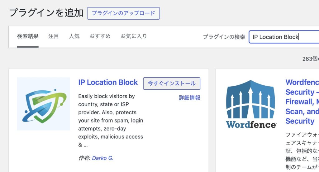 「IP Location Block」を検索し、インストールしていきます。